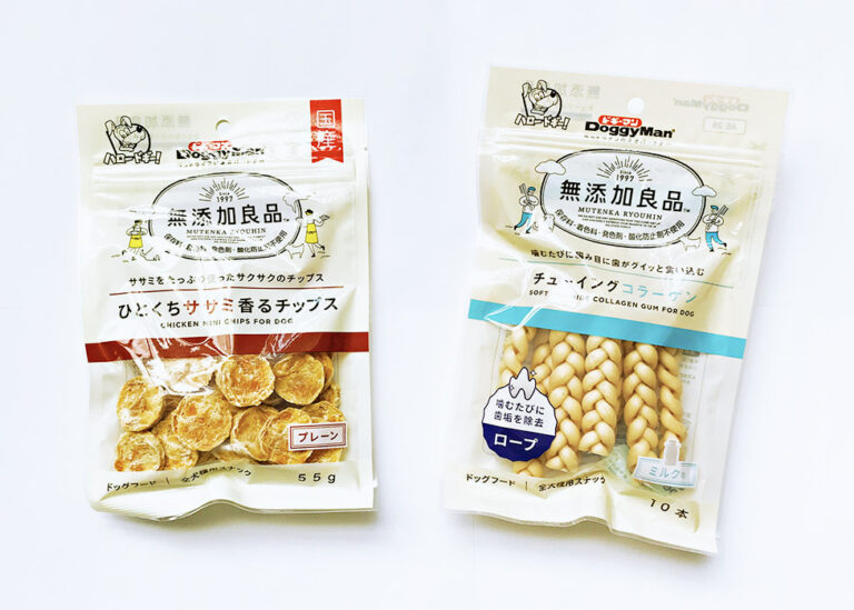 商品のコンセプトである「家族の一員である愛犬のカラダを気遣う想い」を起点に、安心・安全であることが一目で伝わるよう、「無添加良品」という言葉をブランドロゴとして設計。また、店頭に陳列された際に“面”として視認性高く際立つことを想定し、「無添加良品」という商品特長をストレートに表現。余計な装飾を加えず、何も足さないシンプルなデザインをご提案。