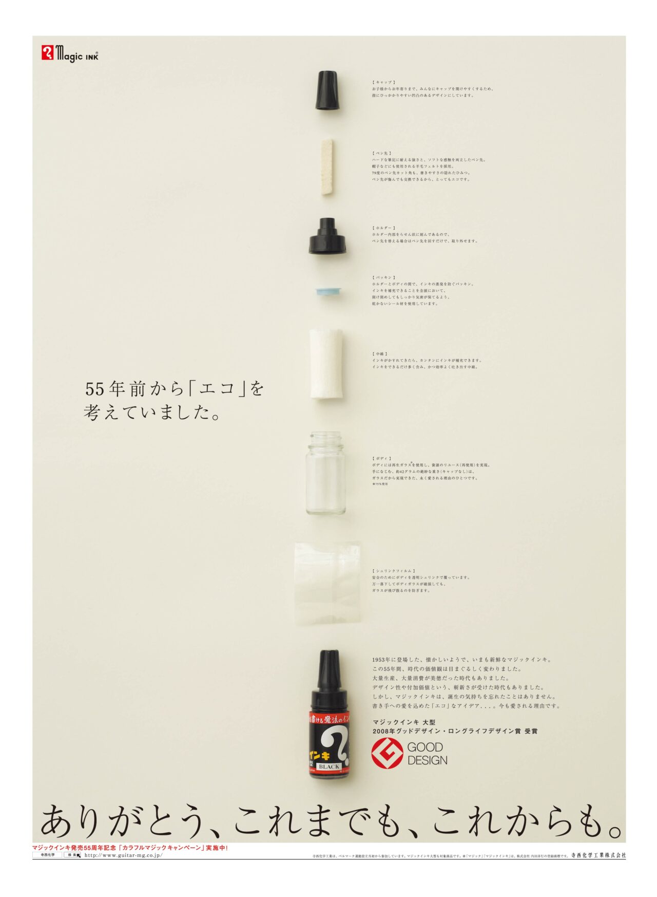 マジックインキ発売55周年記念 新聞広告 CLIENT 寺西化学工業株式会社 要件 マジックインキ発売55年の節目に、グッドデザイン・ロングライフデザイン賞を受賞した製品の考え方と積み重ねてきた時間を伝える、新聞広告の制 …